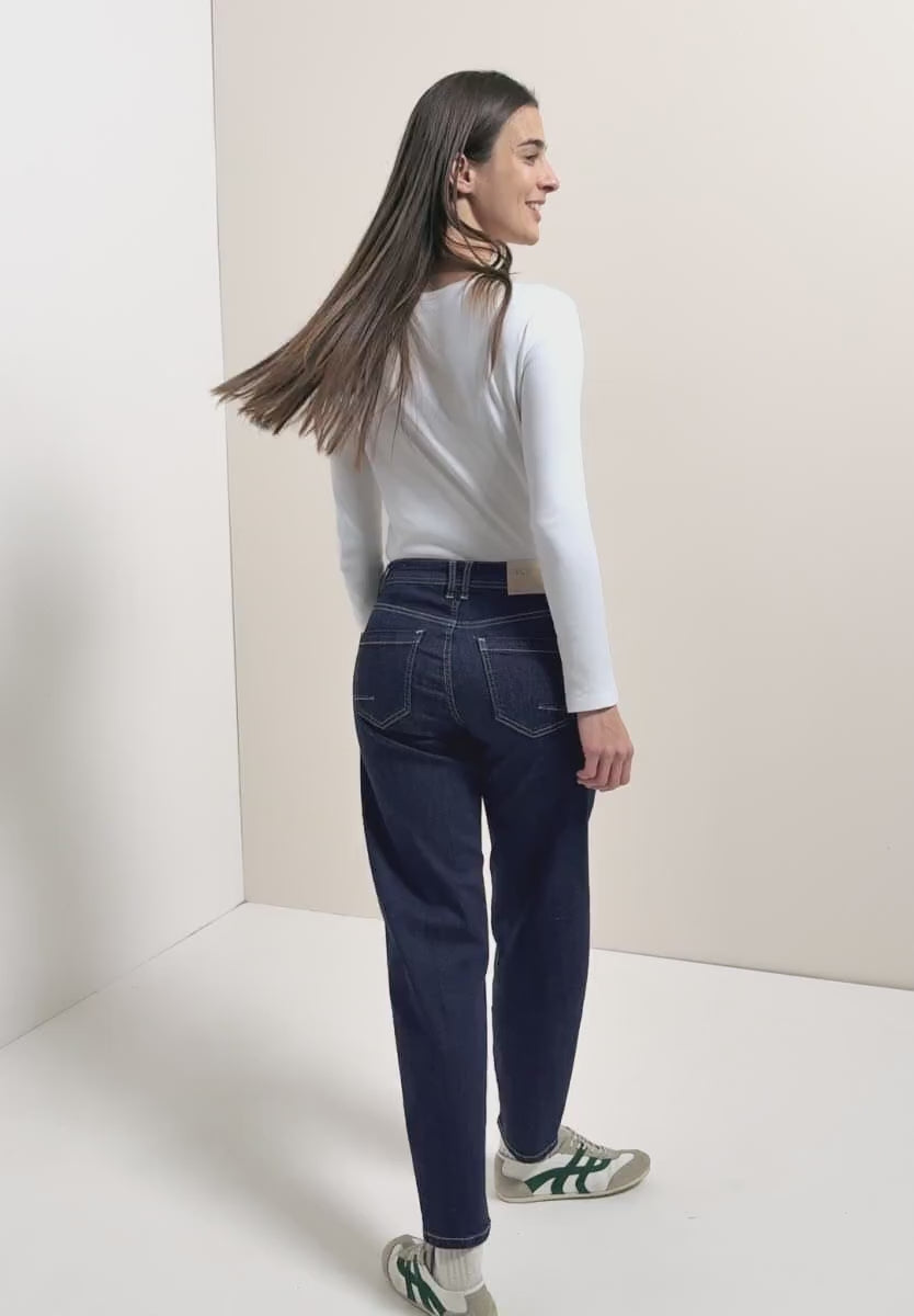 These barrel-leg jeans with a relaxed fit, styled Scarlett by CECIL, are ideal for sporty casual looks. The rinsed wash creates a modern and understated look, while the high-waisted cut flatters the feminine silhouette. The cotton blend with added stretch provides exceptional comfort.