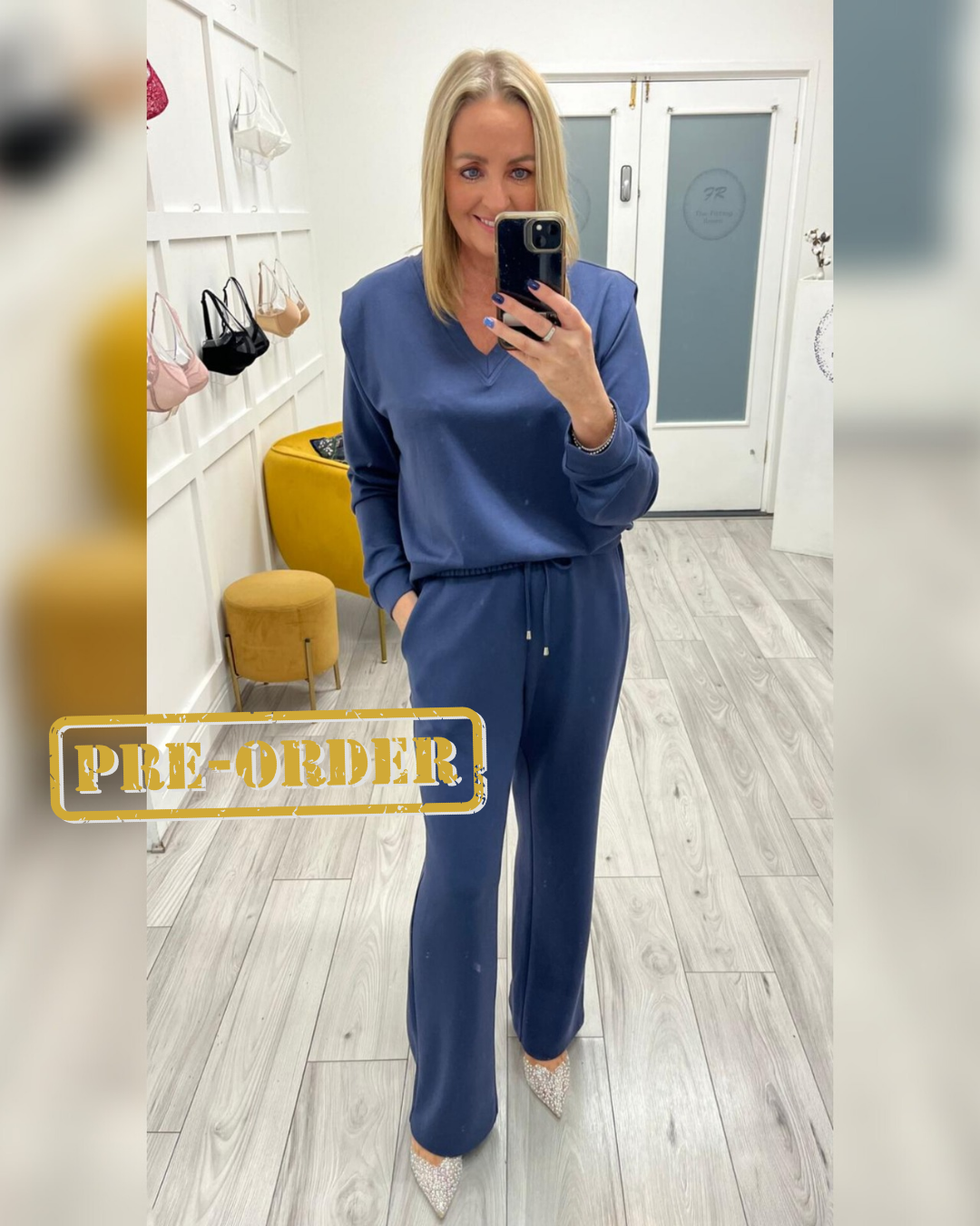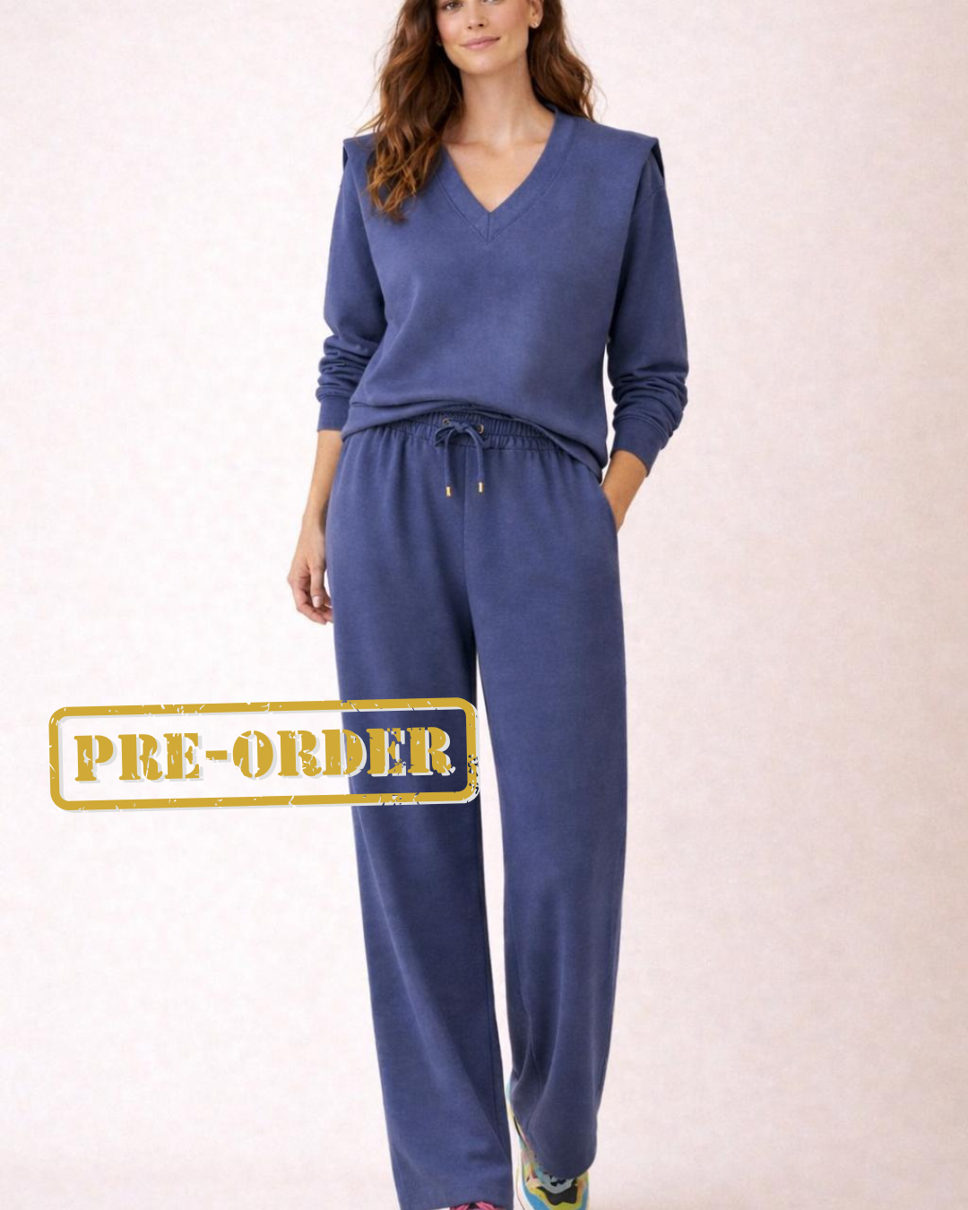 Effortless comfort meets everyday chic. This two-piece lounge set features a soft, stretch velour feel with a relaxed V-neck long-sleeve top and matching drawstring pants. Easy, flattering, and perfect for lounging or stepping out in style. ✨