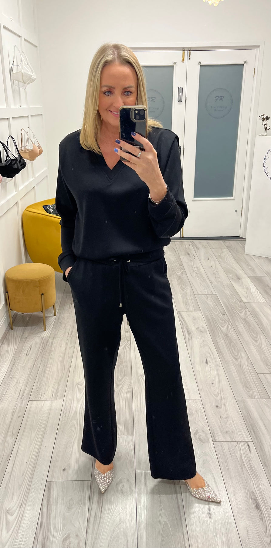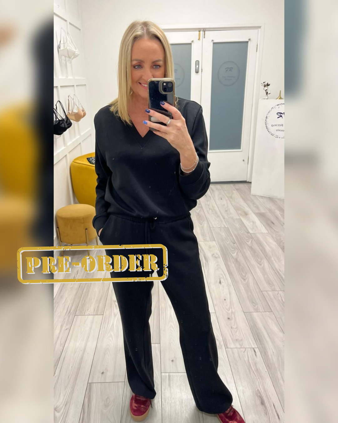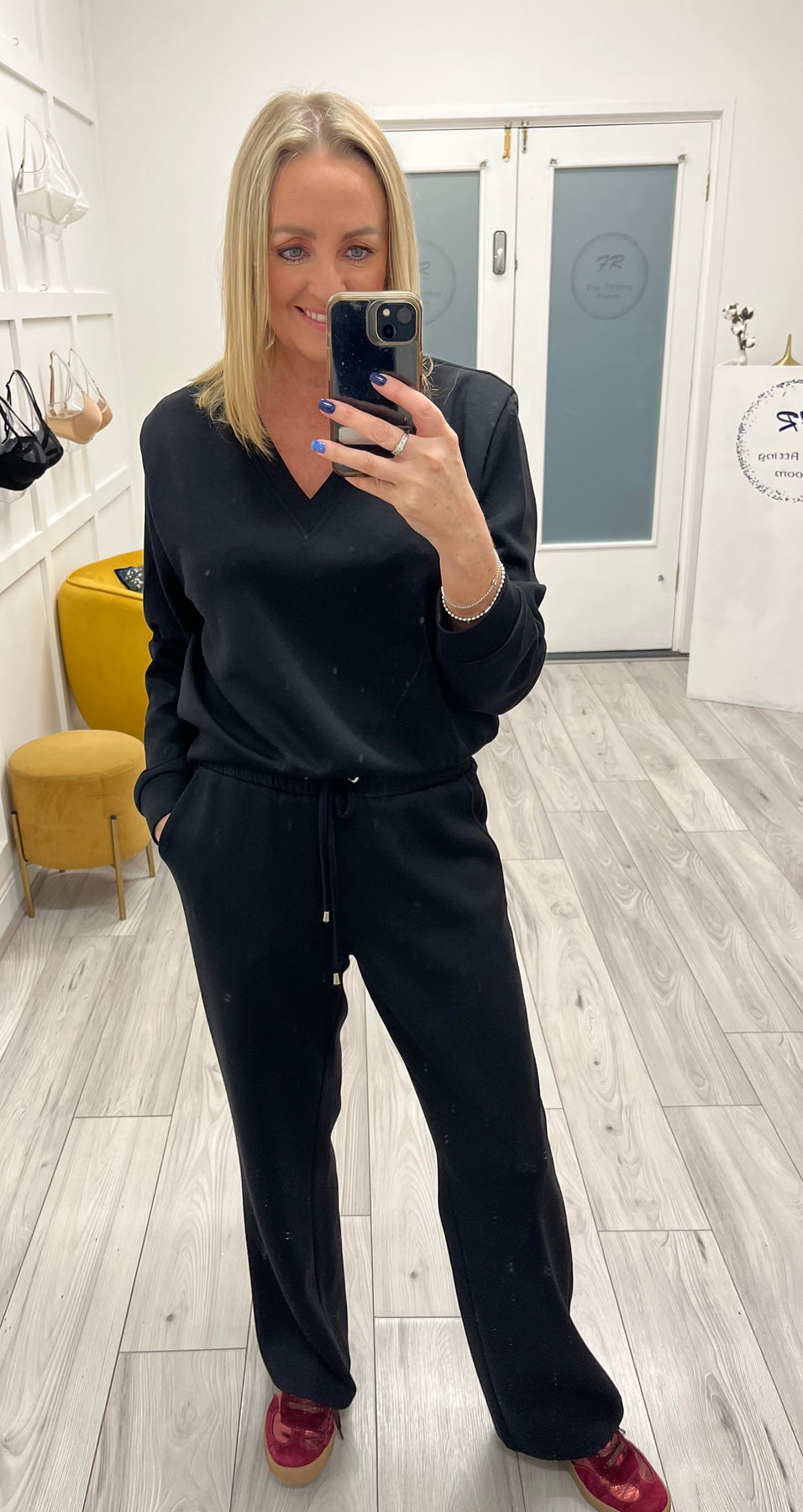Effortless comfort meets everyday chic. This two-piece lounge set features a soft, stretch velour feel with a relaxed V-neck long-sleeve top and matching drawstring pants. Easy, flattering, and perfect for lounging or stepping out in style. ✨