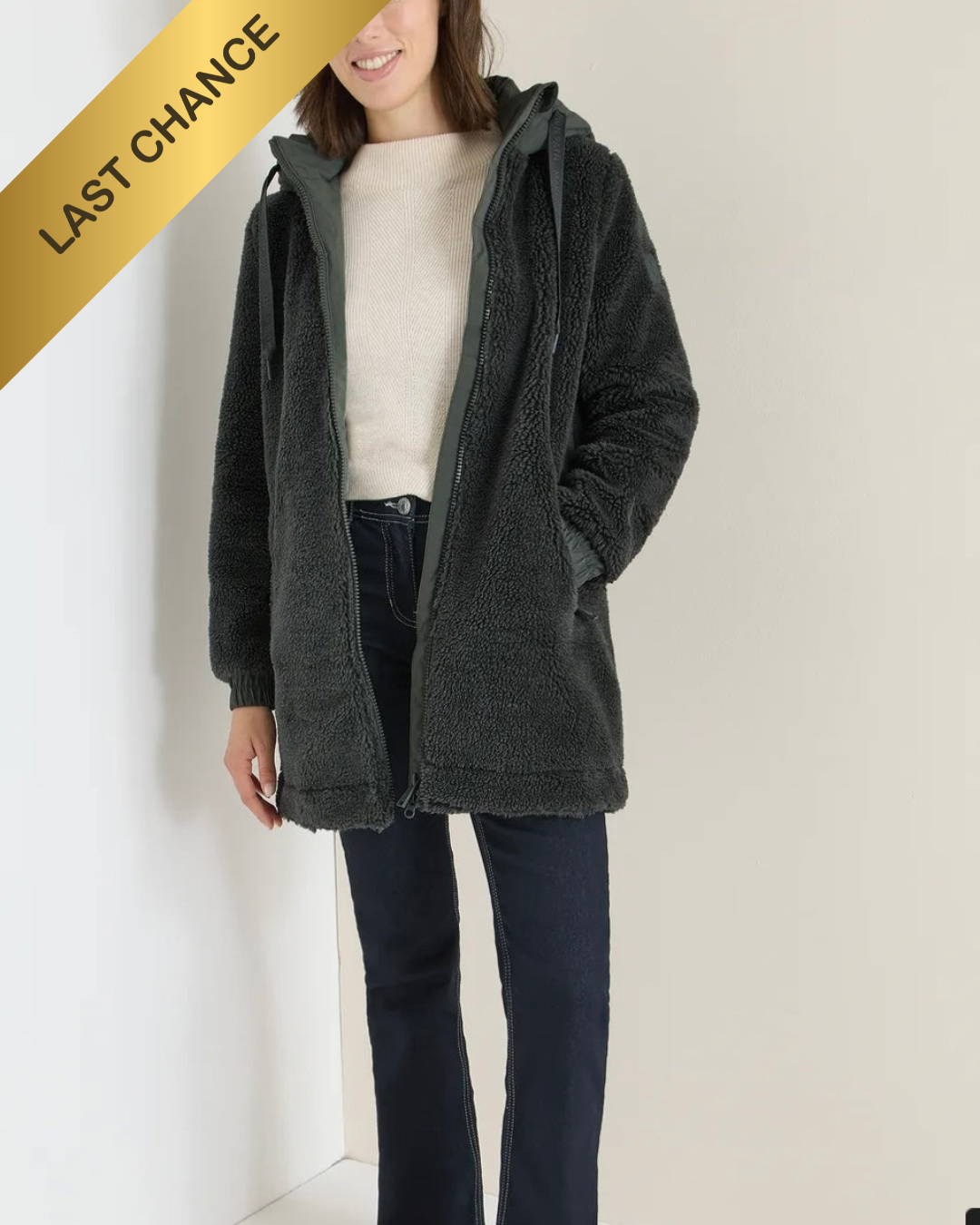 The Cecil Teddy jacket is a great option for cold Winter days, this cozy jacket in pastel olive is has a hood and all the usual sporty details from Cecil including two front pockets.
