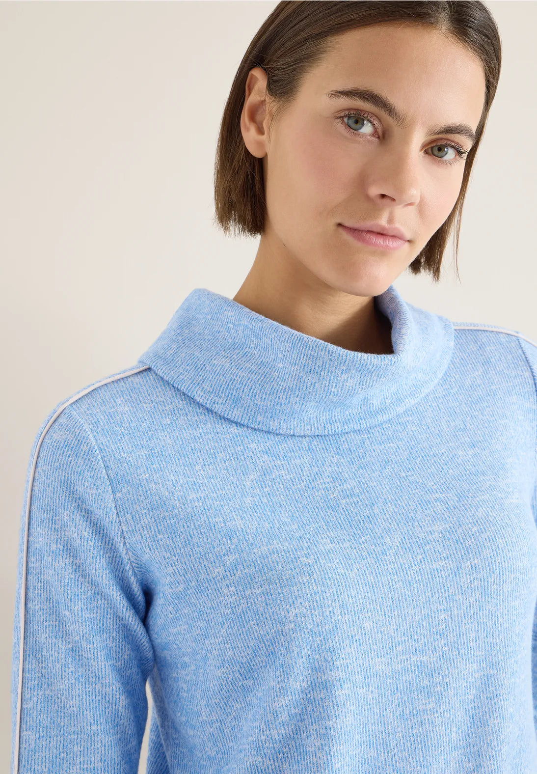 CECIL Soft Melange Sweater With Piping on sleeves (Blue)