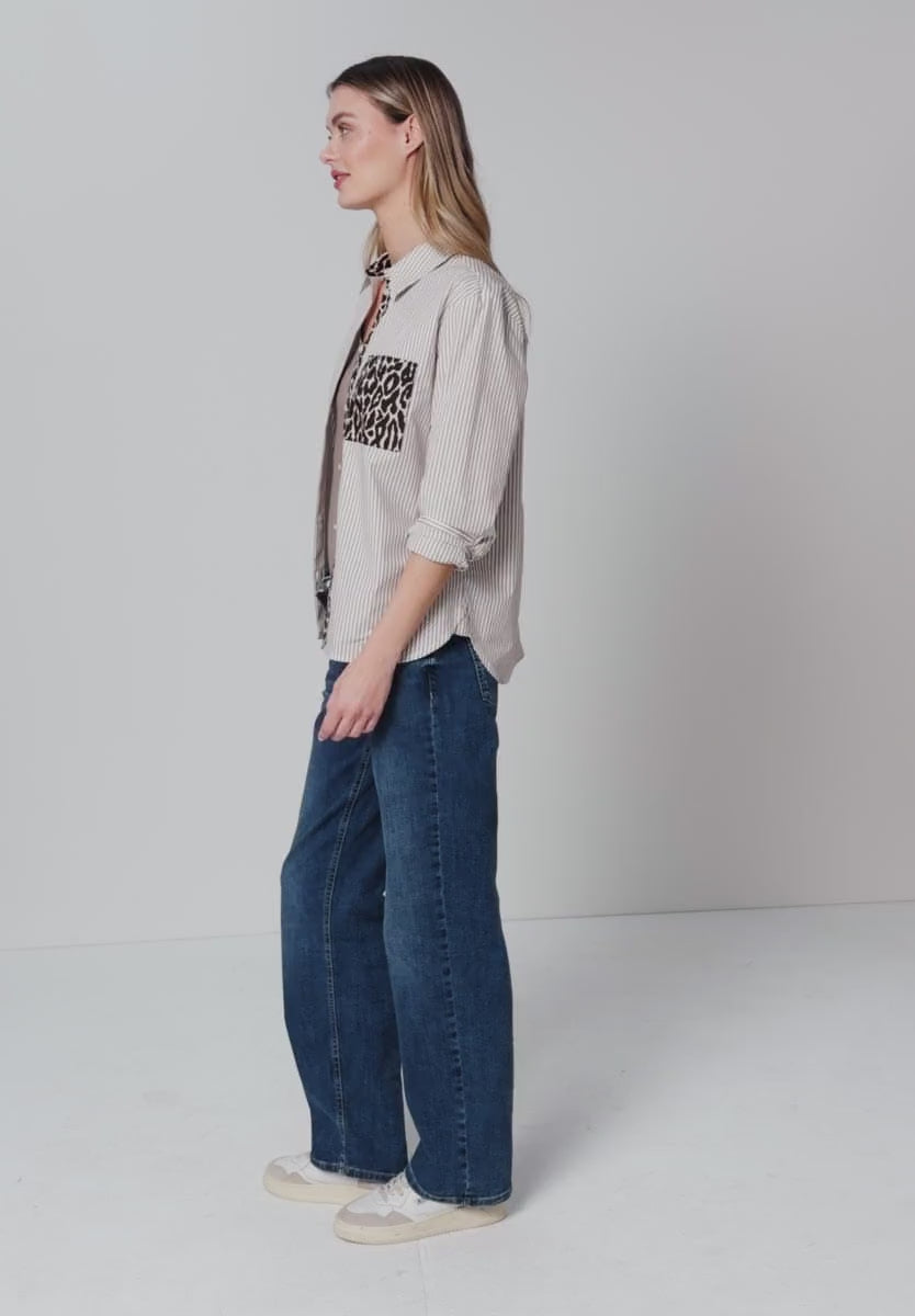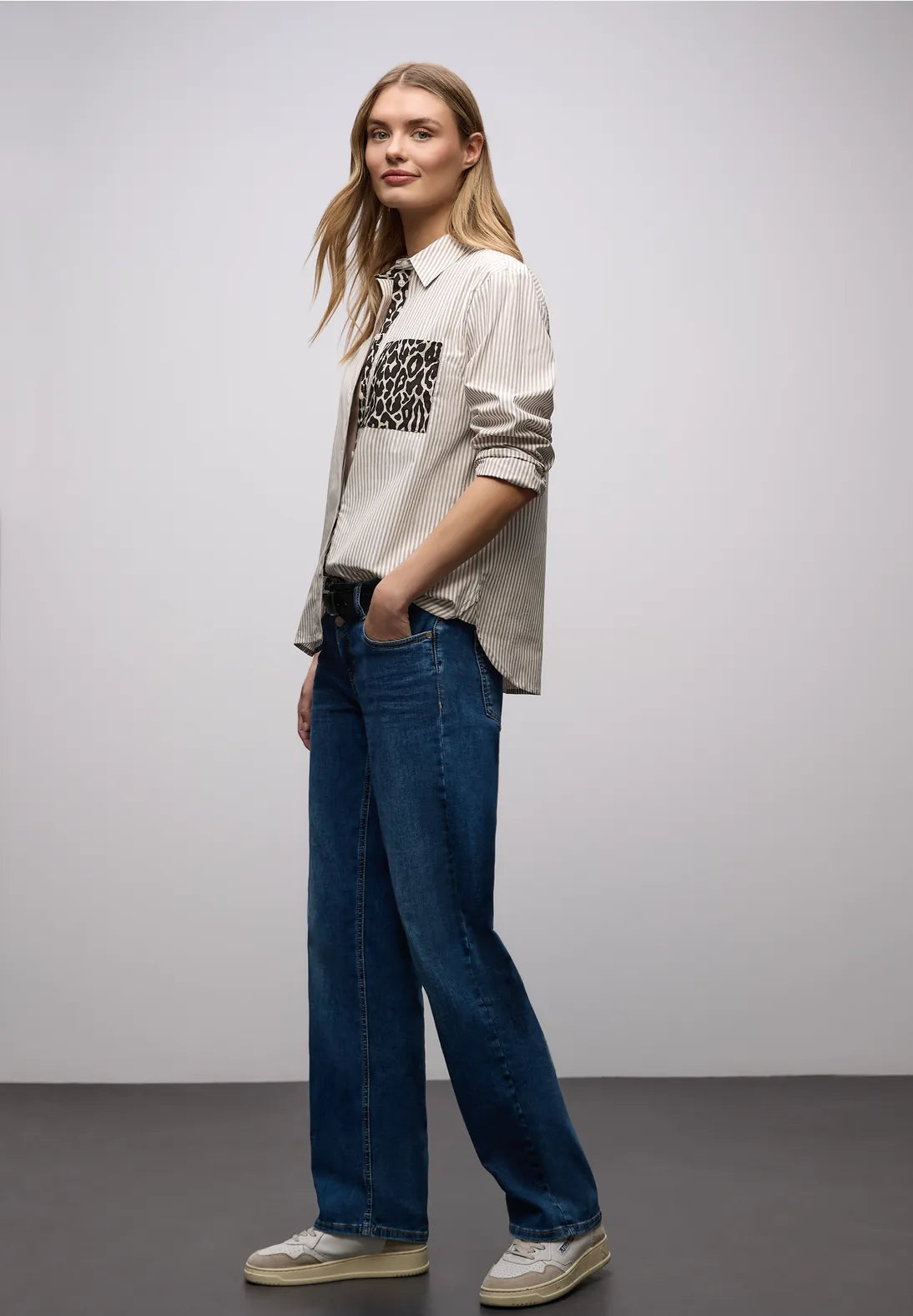 This striped shirt blouse from Street One for women impresses with classic lines and a modern twist. The leopard print on the chest pocket adds a striking accent, while the pure cotton ensures comfortable wear. A stylish companion for everyday life and the office.
