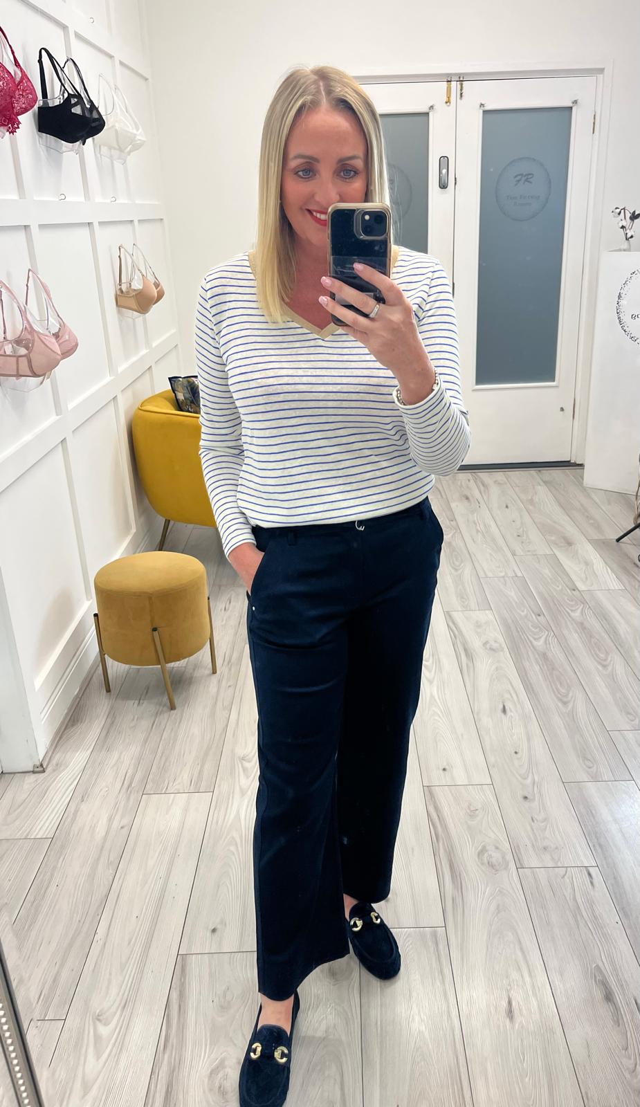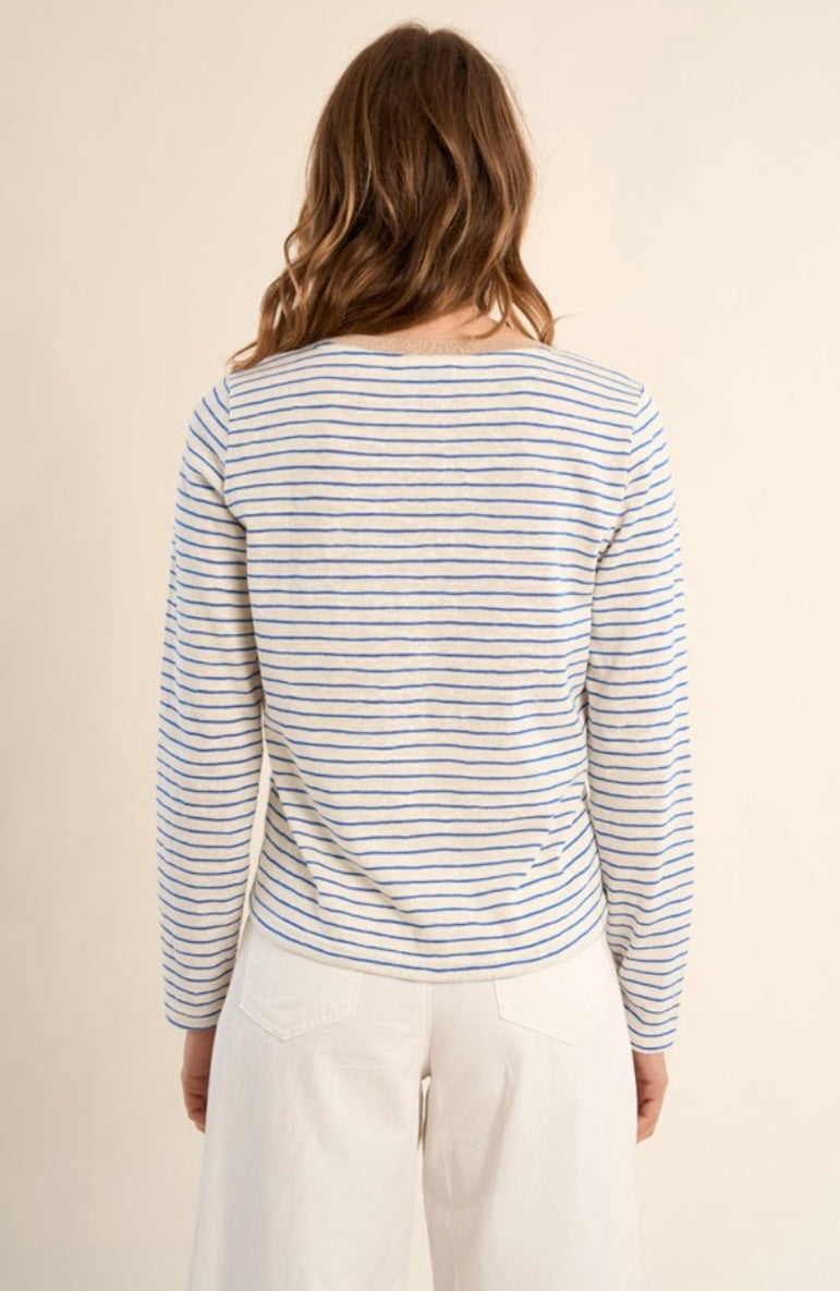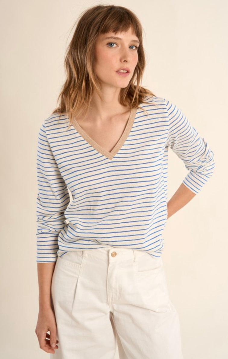 "-Sailor T-shirt, V-neck -Gold collar, rhinestone -Long sleeves -Straight fit -Length from the shoulder 58cm for a size S"