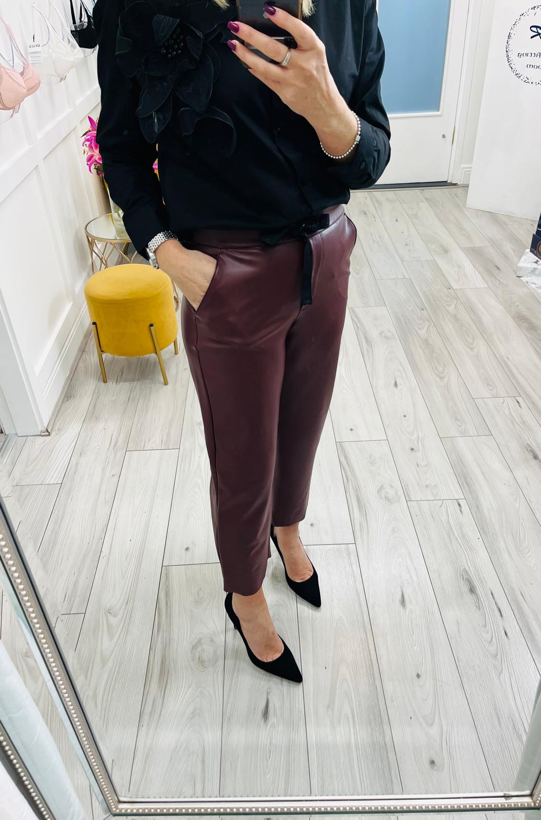 Robell Kati 09 ( Burgundy) Wide Leg Faux Leather Culotte